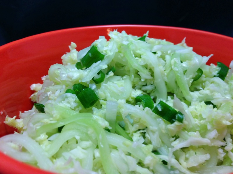 In looking at this dish even while assembling it, I could see that its appearance would benefit from some colour other than green. Julienned carrot…